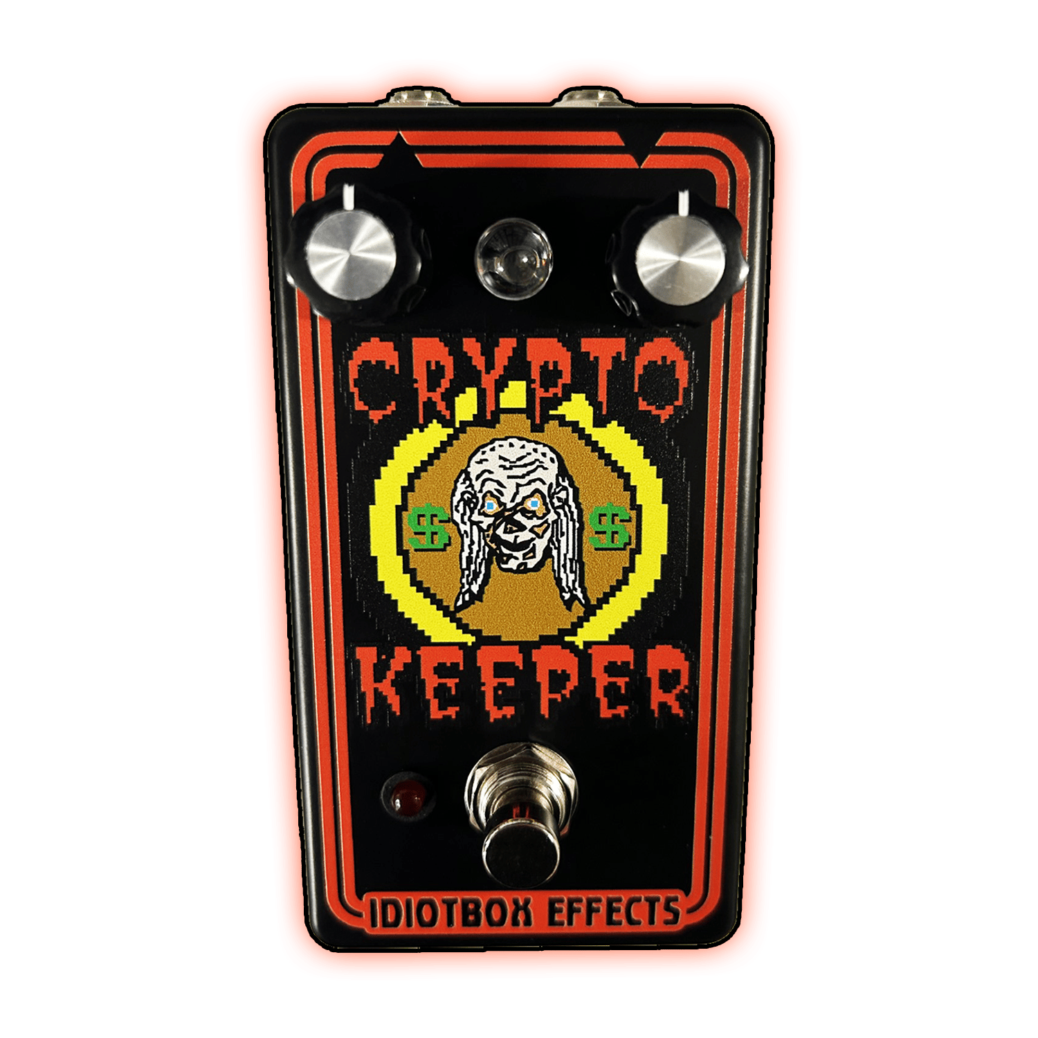 The Crypto Keeper is a modulated bit-crusher. As it ebbs and swells the amount of crushing fluctuates. Left knob is for the modulation speed and the right knob is for volume level. Had a few enclosures left from a VERY limited run so snag one while you can, boils and ghouls!