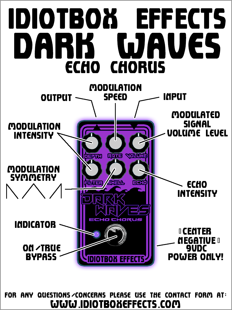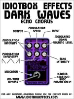 "The Dark Waves Echo Chorus is fuckin' incredible. It makes my clean songs sound even better. The haunting swells and modulation take me out of this world when paired with my delay and the No Moon." -Willard W. (North Carolina)