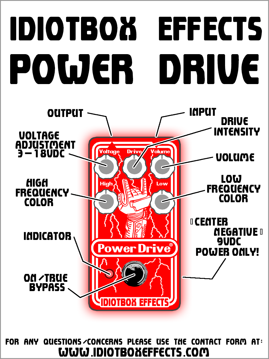 "I am absolutely BLOWN away by the Power Drive. The dynamic and pick sensitivity of the Power Drive was totally unexpected, and knocking down the voltage creates the coolest freakin fuzz!!" -Mariful A. (Toronto, Canada)